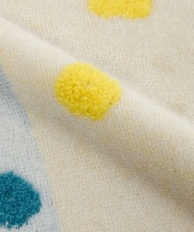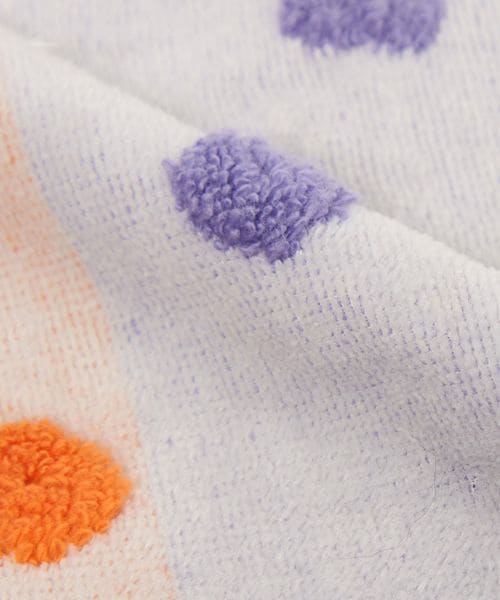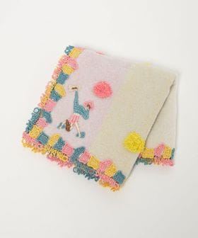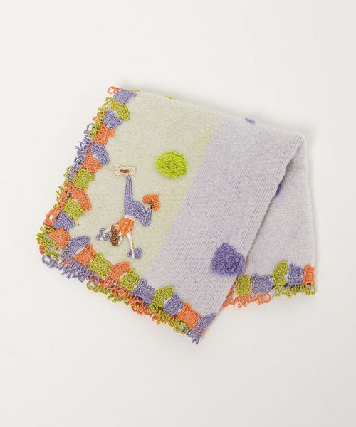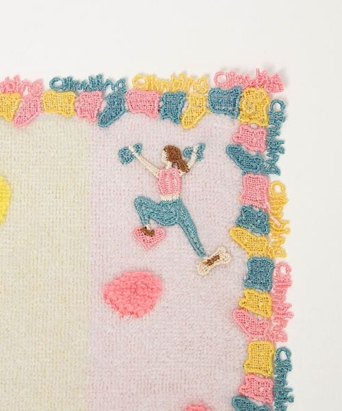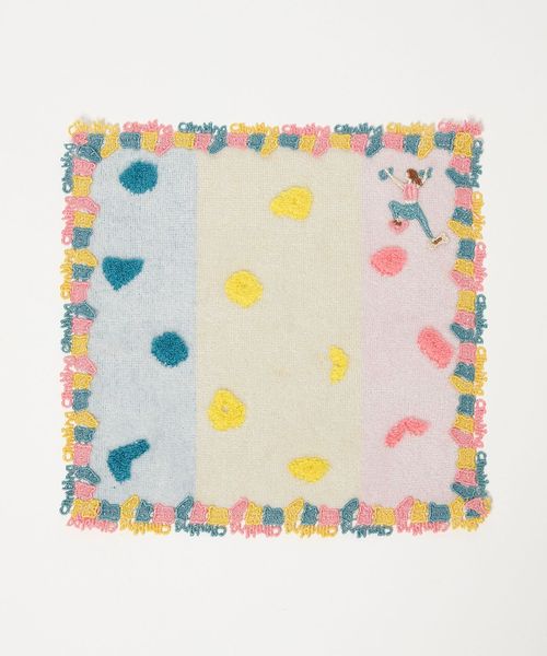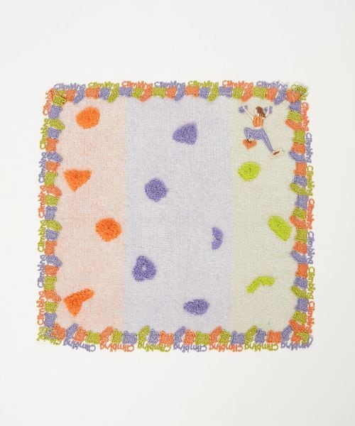 カラフルな色合いのホールドを、立体感のあるパイルや縁取りのレースで象ったハンカチ。