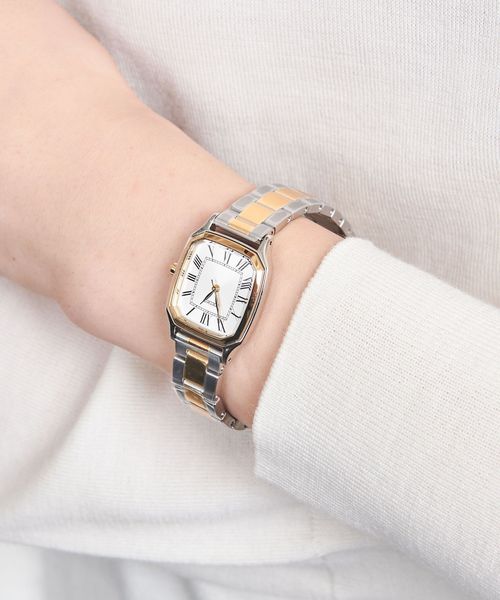 艶やかなコンビカラーのメタルバントが手元を華やかなに演出する腕時計。