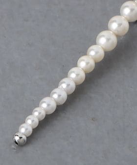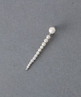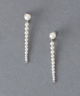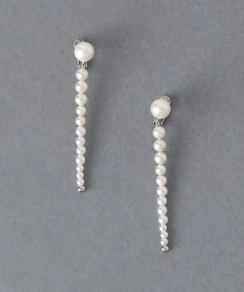 イミテーションパールがだんだんと小さくなっていくテーパードシルエットのイヤリング。