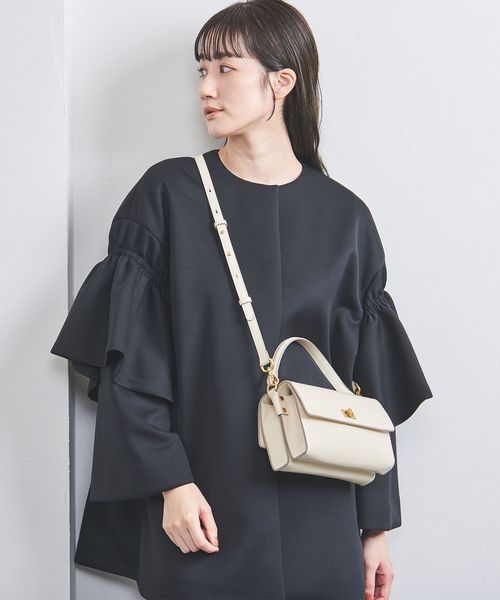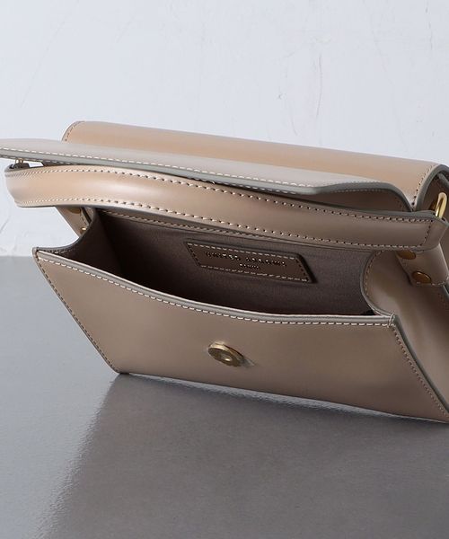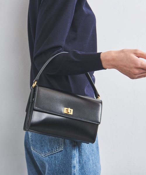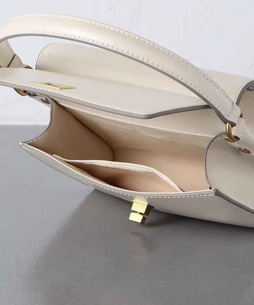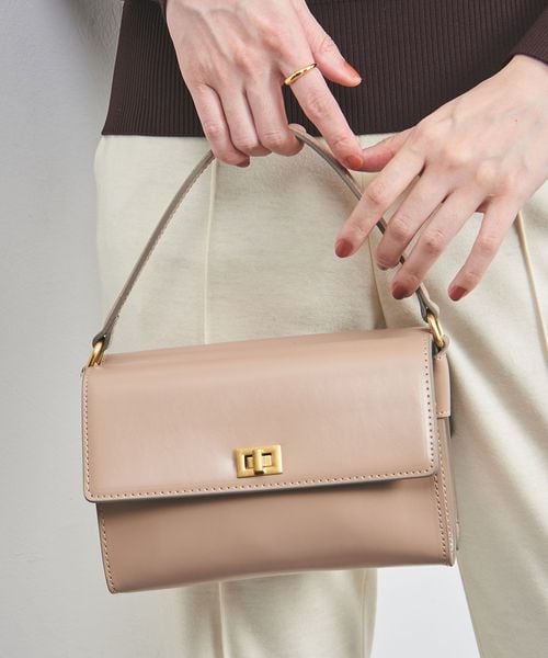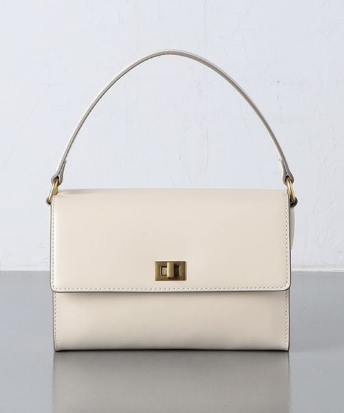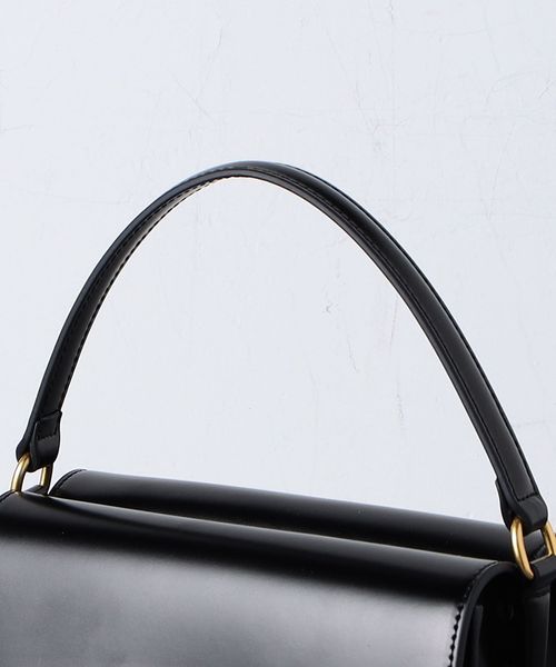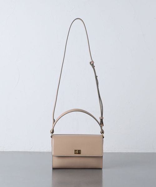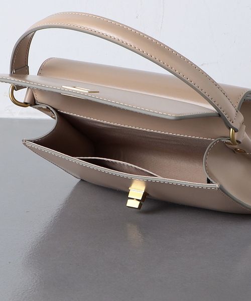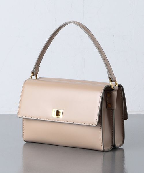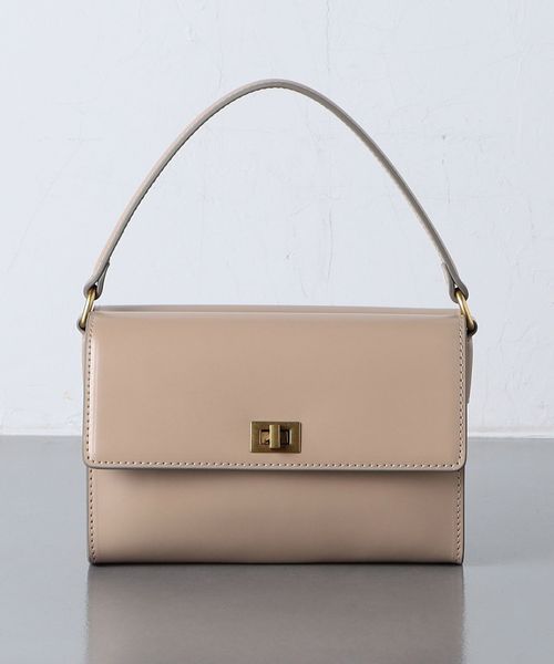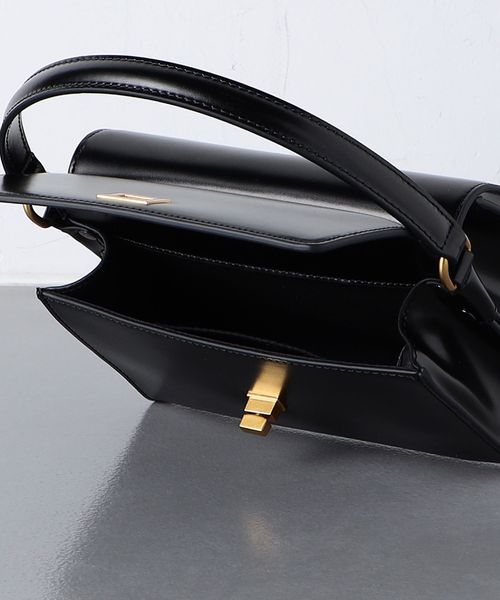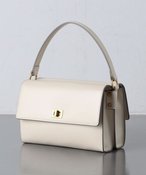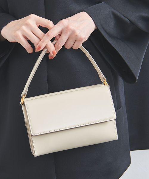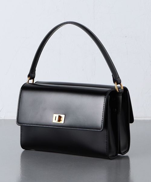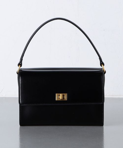 前後ともにフラップを配したコンパクトなハンドバッグ。