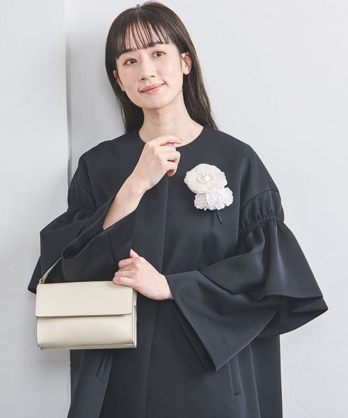 光沢のある素材を使用し、フォーマルなシーンにも活躍するデザインに。