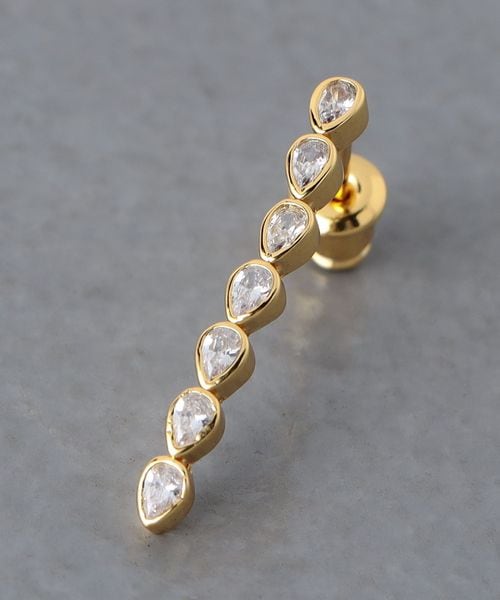 ドロップ型のビジューがエレガントな耳元を演出するピアス