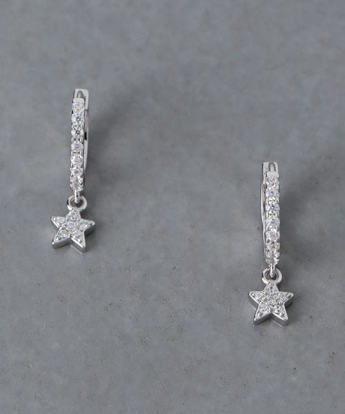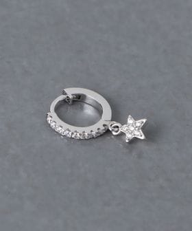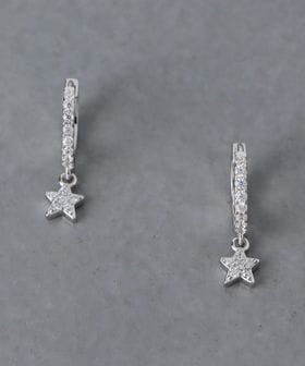 さりげなく揺れるミニスターシェイプのモチーフに細やかなビジューをあしらったフープピアス。