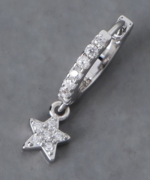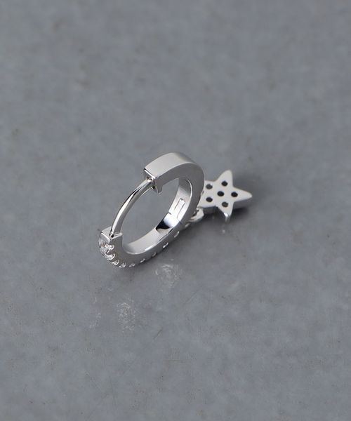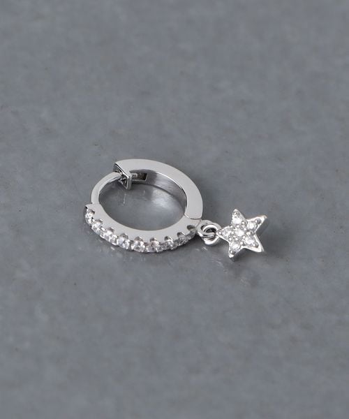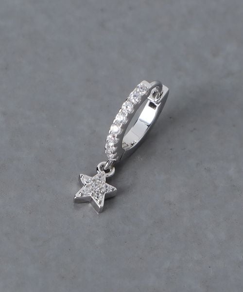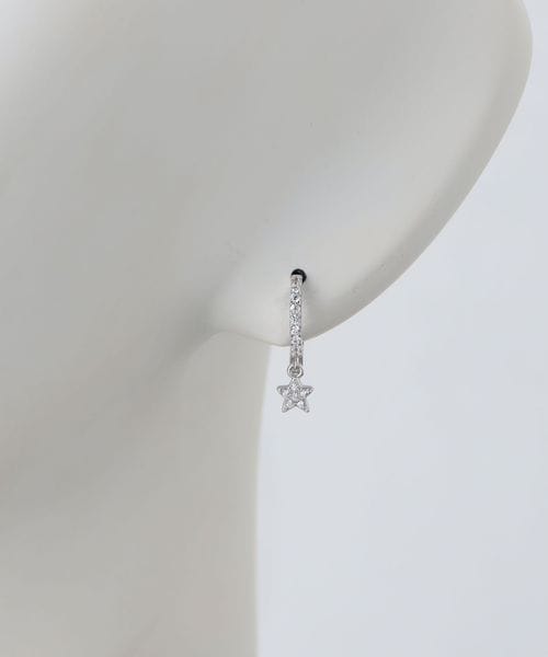 さりげなく揺れるミニスターシェイプのモチーフに細やかなビジューをあしらったフープピアス。