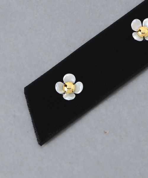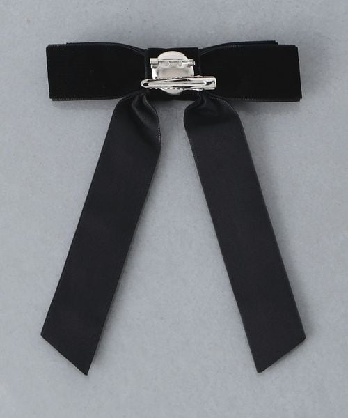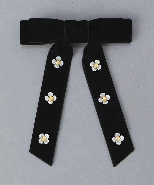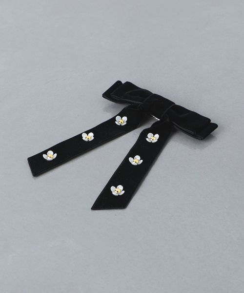 フラットのリボンにフラワーモチーフをあしらったヘアクリップ