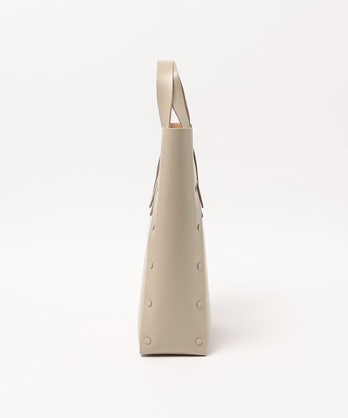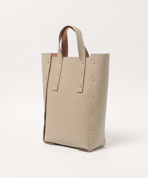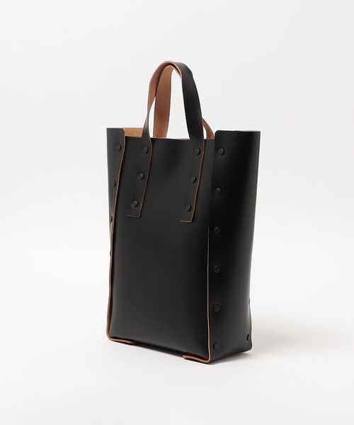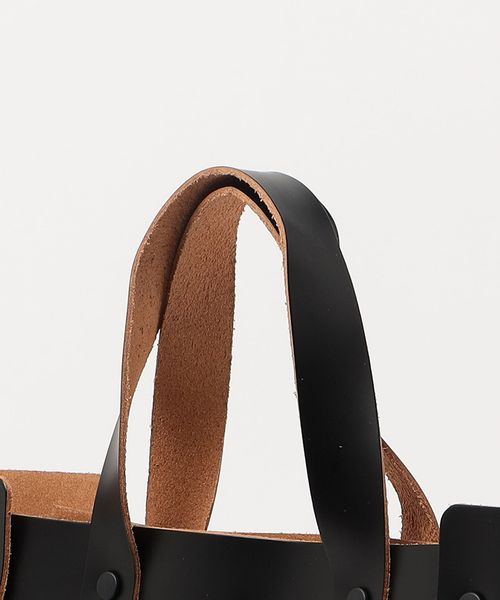 本体部分は縫製ではなくリベットでつなぎ合わせた作りで、自然なカーブを描くラインとフラットな表面感が混在した特徴的なデザイン。