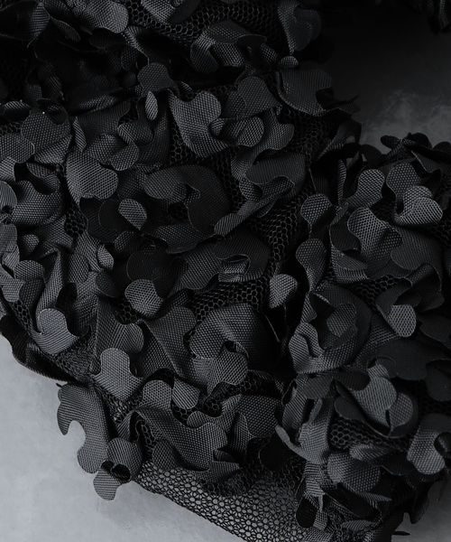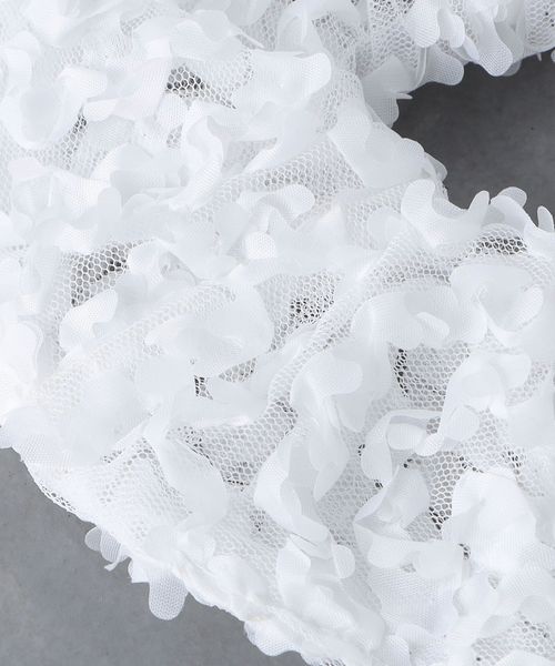 小花をあしらったようなチュールのシュシュ。