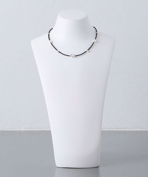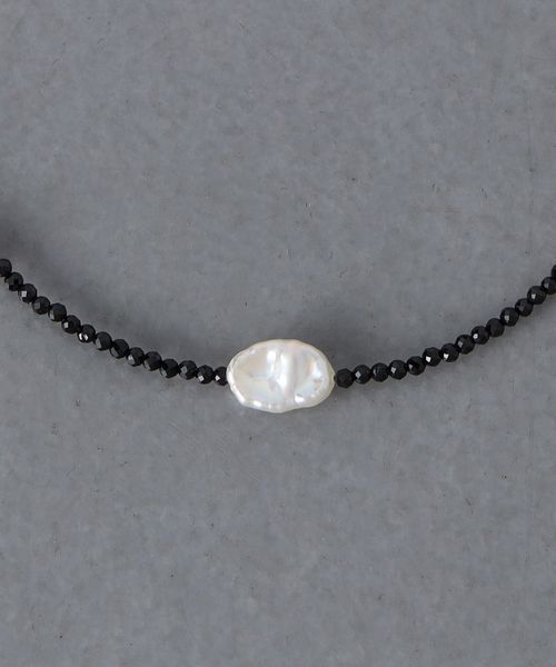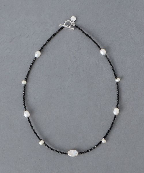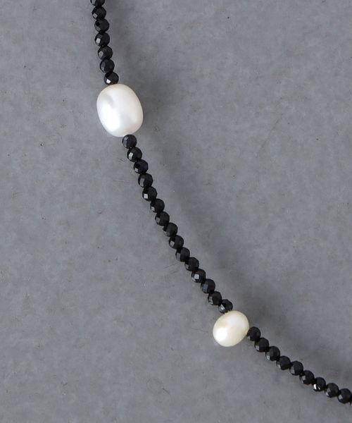 繊細なブラックスピネルの間に大きさや形の異なる淡水パールをレイアウト。