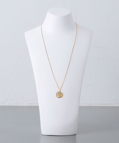 すっきりとしたレクタングルチェーンに深みのあるコインモチーフが魅力的なアイテム。