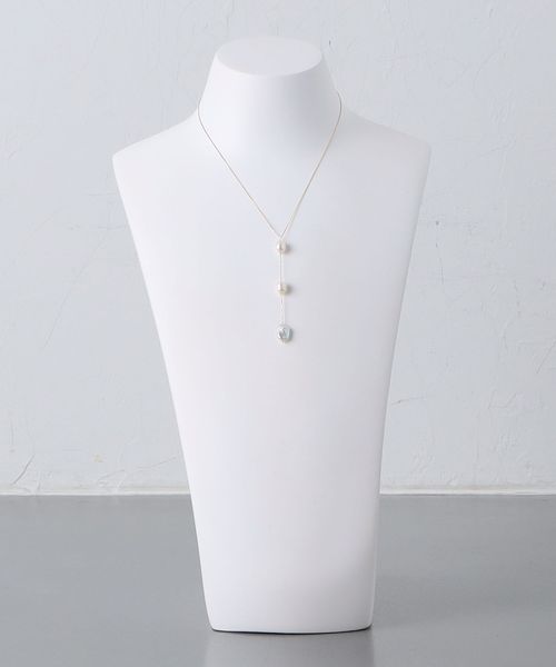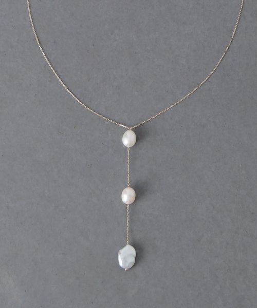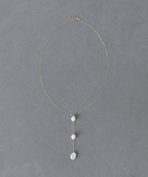 繊細なチェーンに等間隔で並べた淡水パールが揺れる優雅なデザイン。