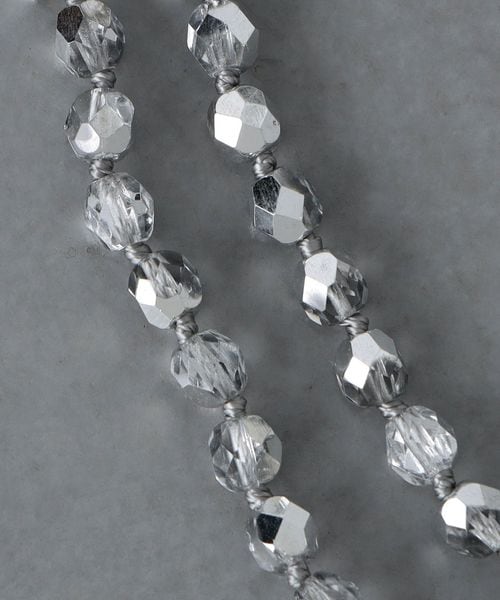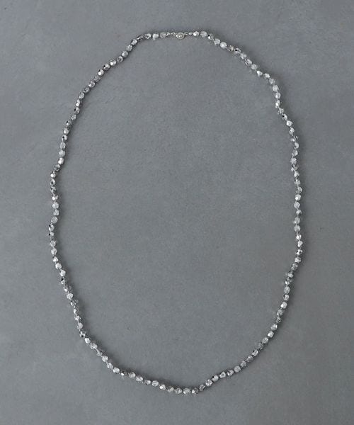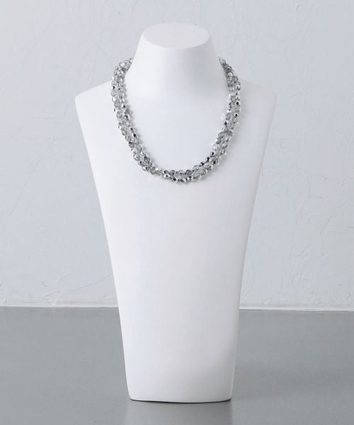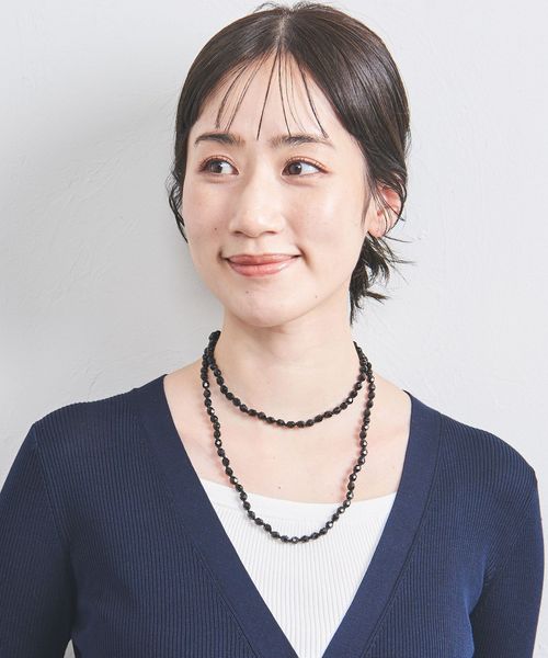 ビーズの間に結び目を入れることで胸元にしなやかに馴染みます。