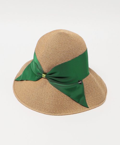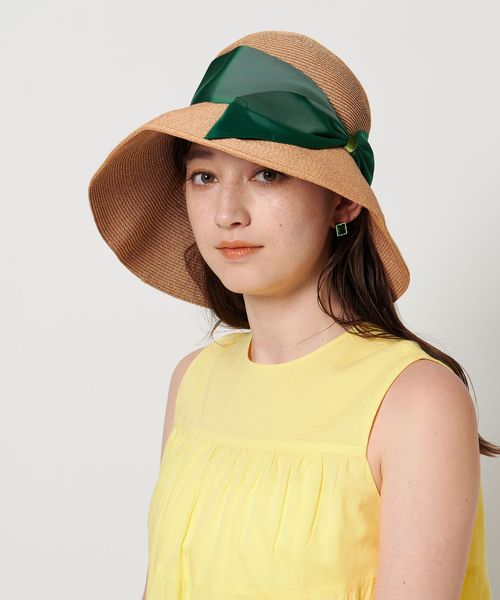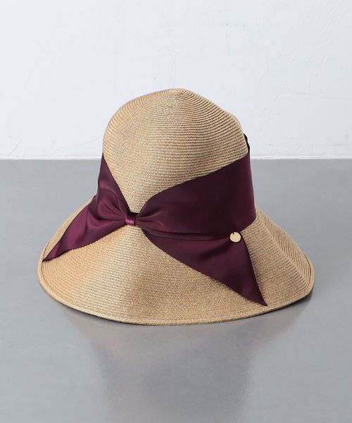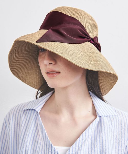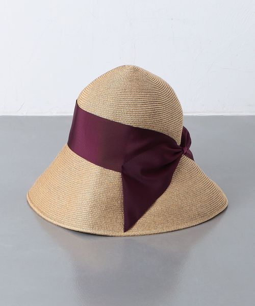 さりげない光沢感を放つリボンが上品なキャペリン型ハット