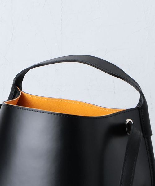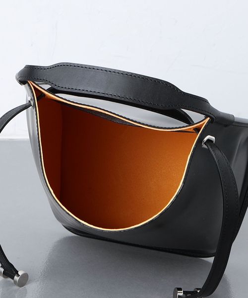 ユニークなフォルムながらも、光沢のある素材感がカットソーやパンツなどのカジュアルスタイルに映える一品。