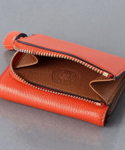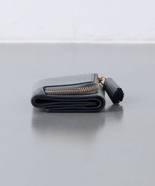 ミニバッグにも収まるスリムな三つ折りのジップウォレット