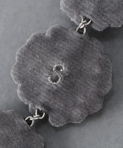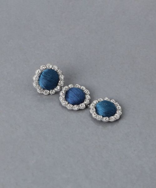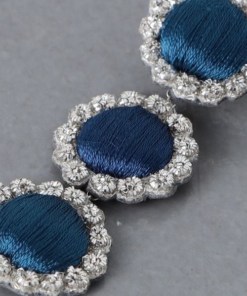 きらめくビジューを再現したシルバーカラー糸が耳元を華やかに。