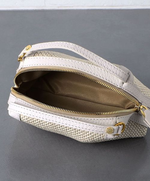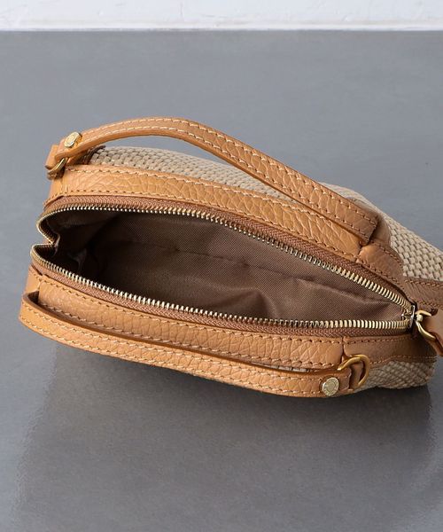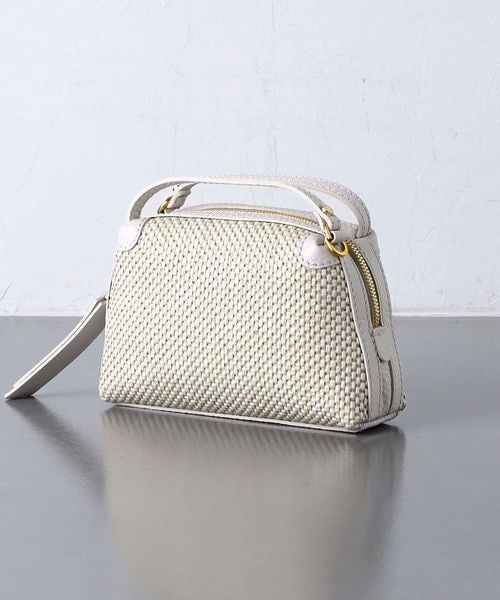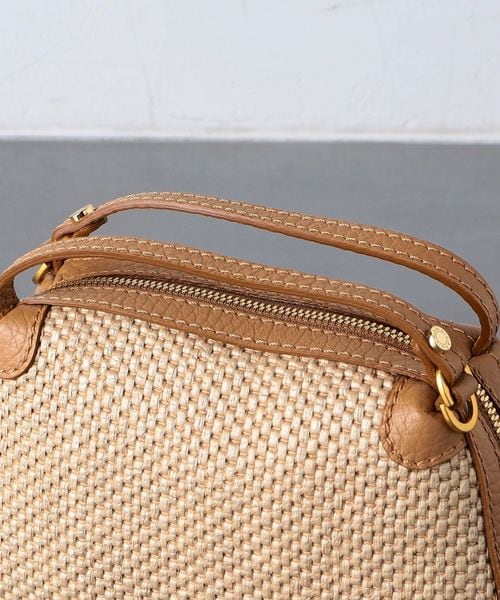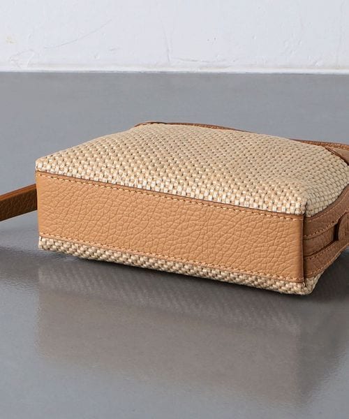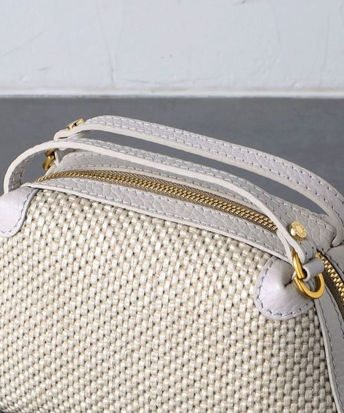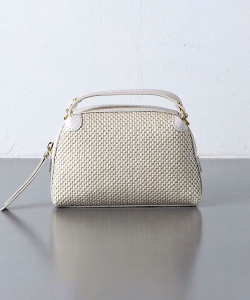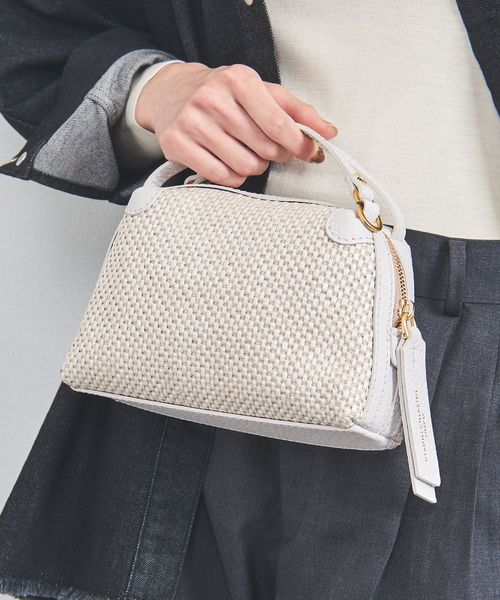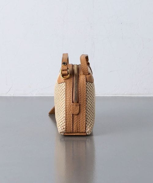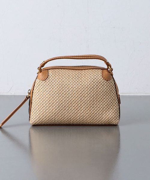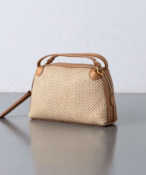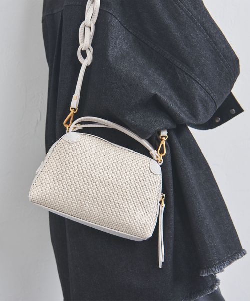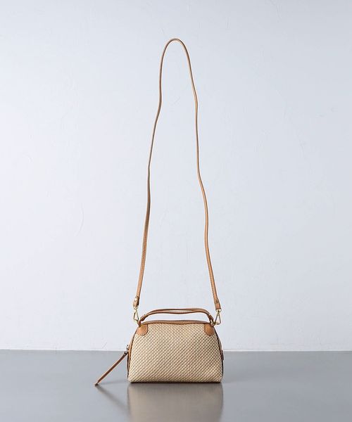 編み込まれたストロー調の素材が特徴的なミニバッグ