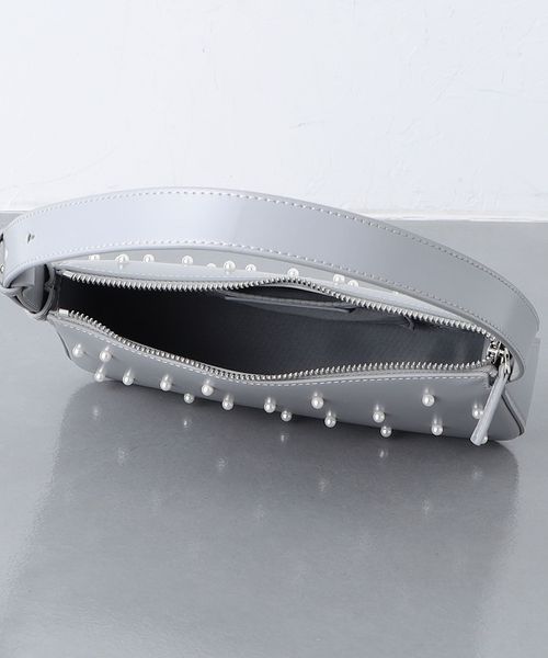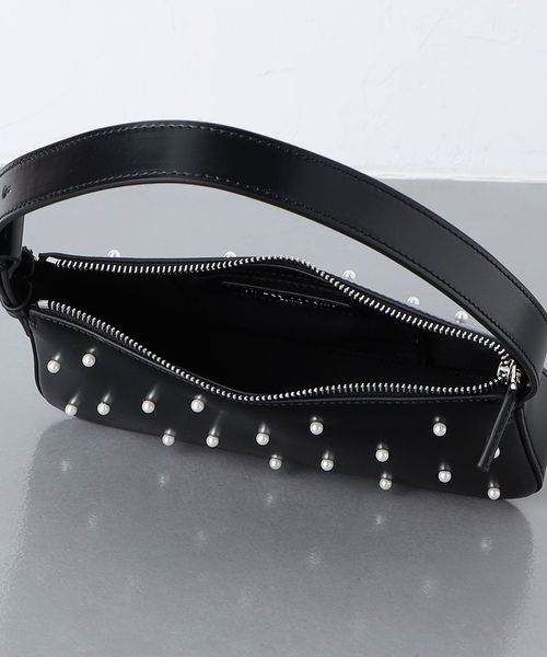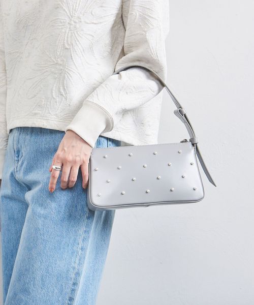 ドット柄のようにイミテーションパールをあしらったショルダーバッグ