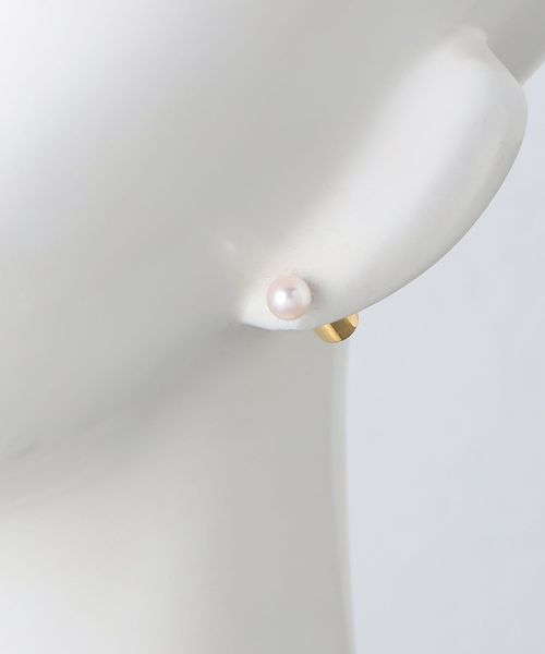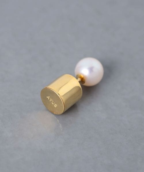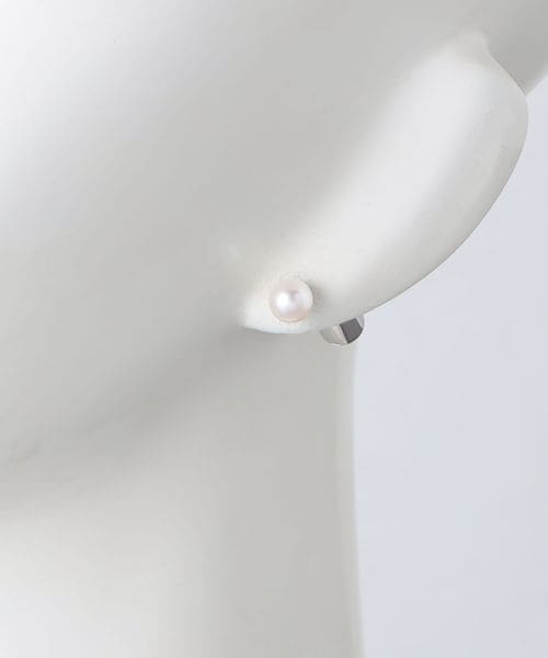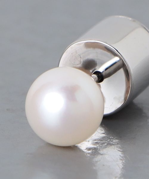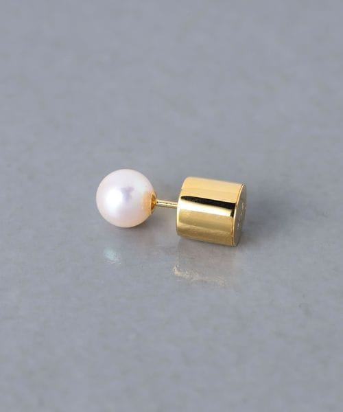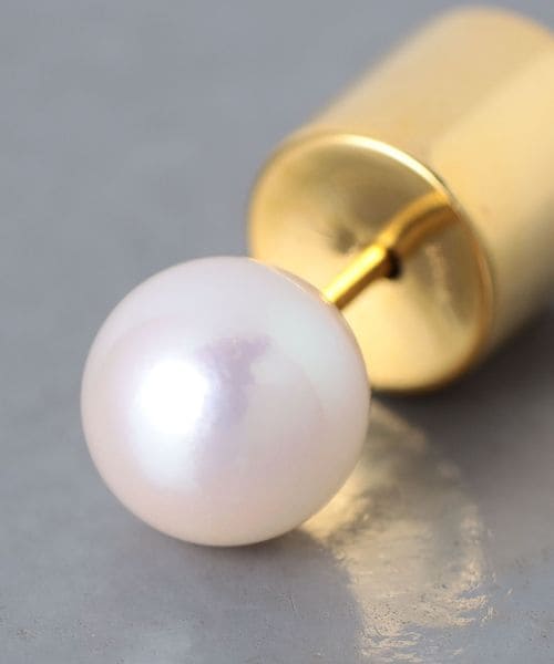 あこやパールとオリジナルの円柱型キャッチのピアス。