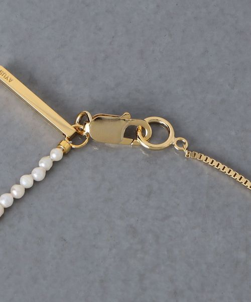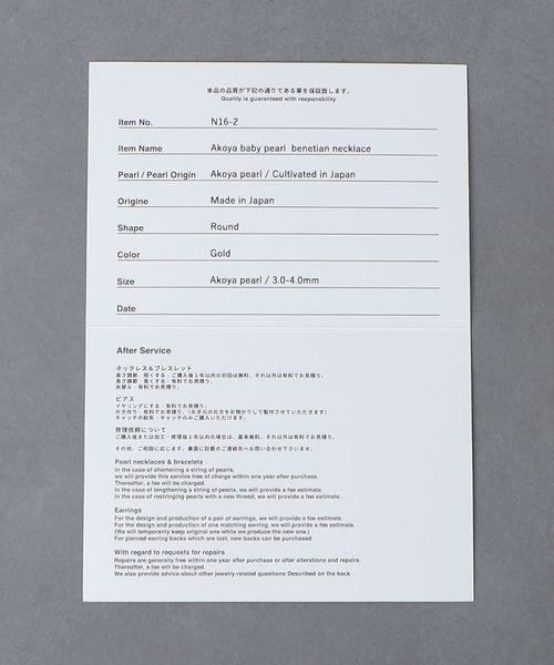 希少なベビーパールを用いたオリジナルのタブ付きネックレス。