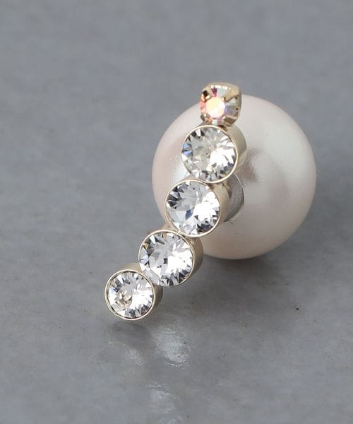 連なるビジューと存在感のあるキャッチの組み合わせが華やかな片耳ピアス