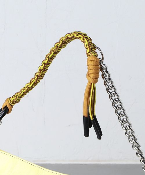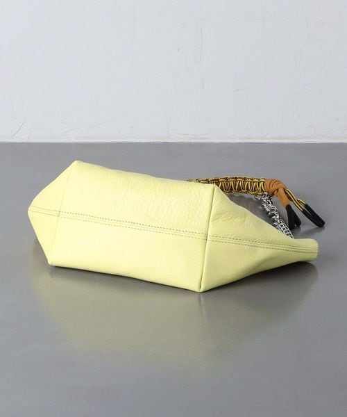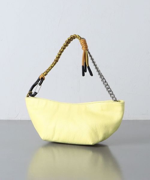 チェーンとローブの組み合わせや横長のデザインがトレンド感のあるトートバッグ。
