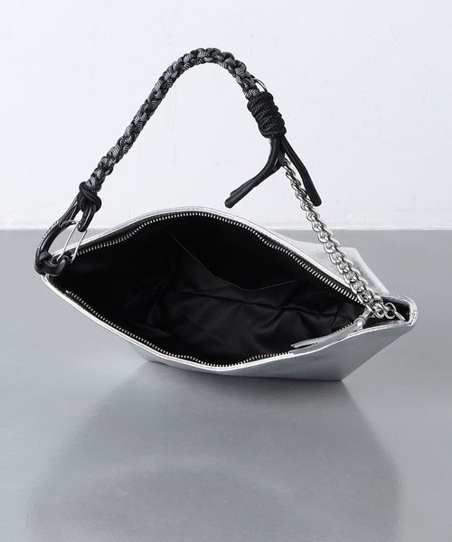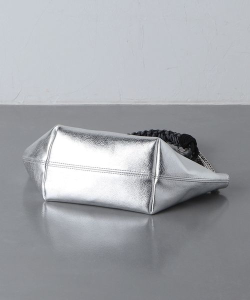 チェーンとローブの組み合わせや横長のデザインがトレンド感のあるトートバッグ。