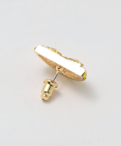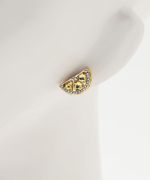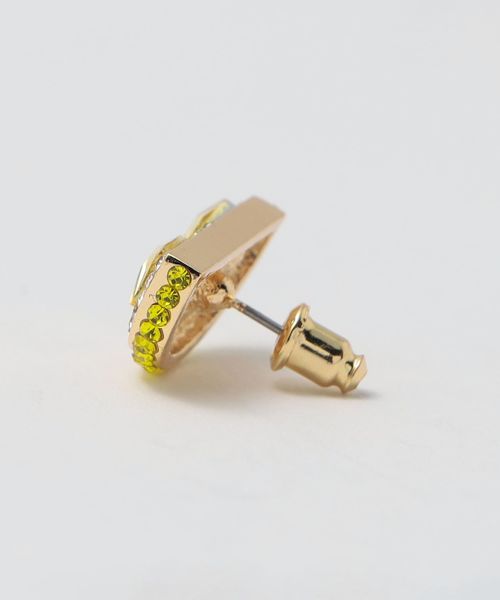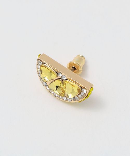 クリアなイエローが耳元で煌めき、顔周りを明るい印象に仕上げます。