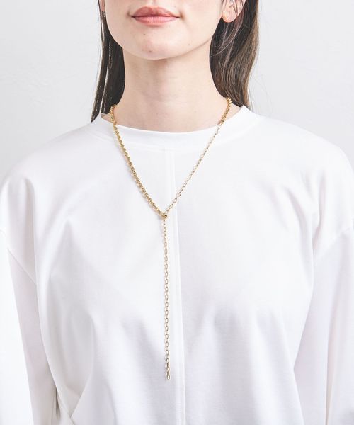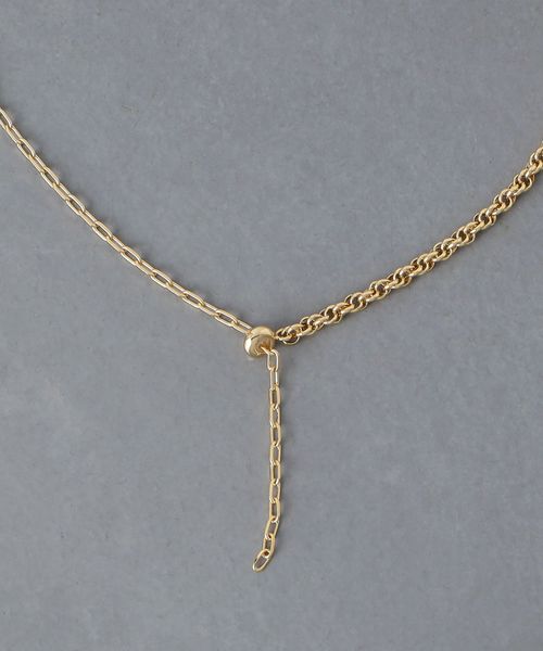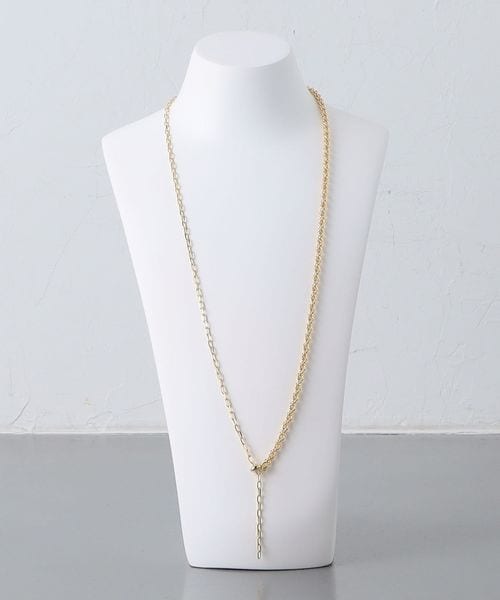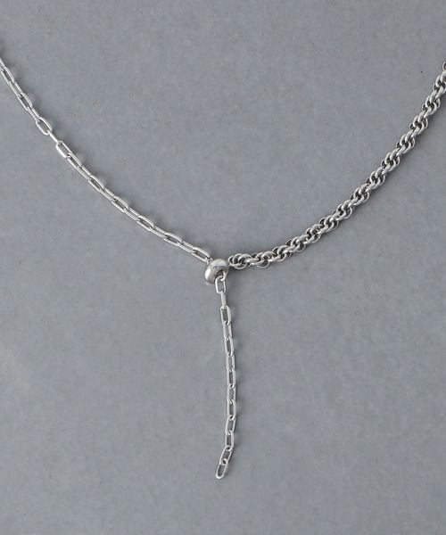 ボリュームの異なる2種類のチェーンをミックスしたラリエットタイプのネックレス