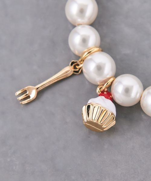 イミテーションパールにモチーフをあしらった遊び心あふれるブレスレット