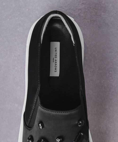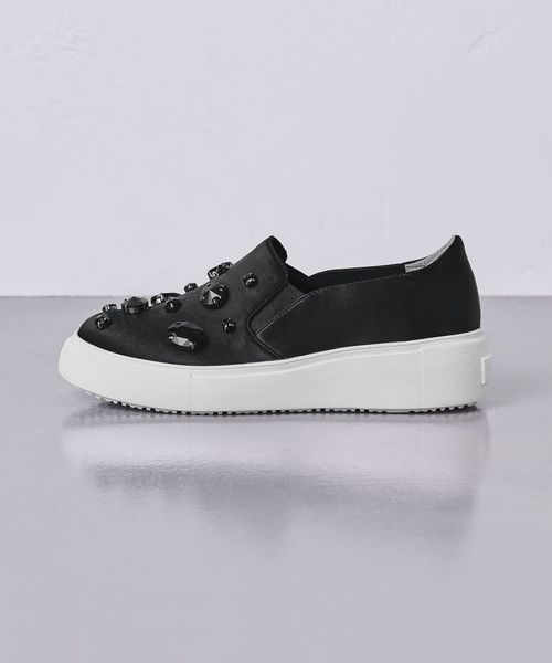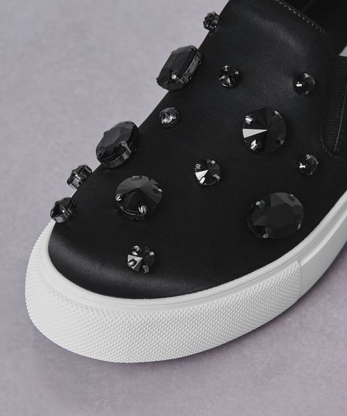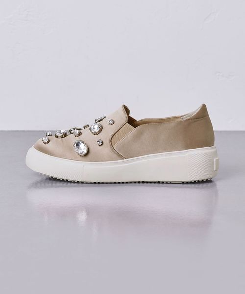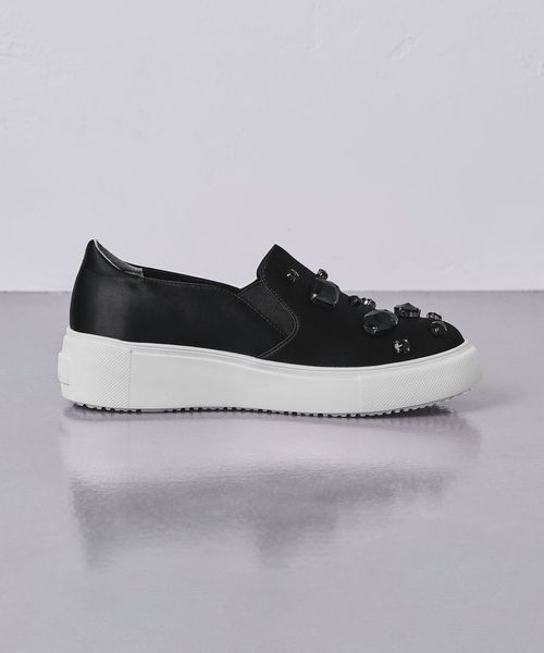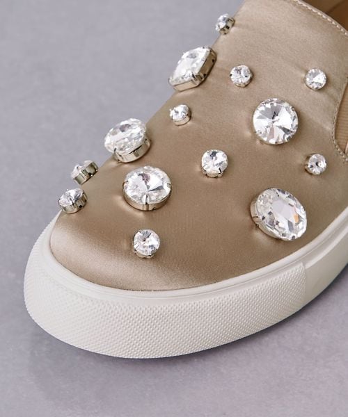 大ぶりなビジューがあしらわれたスリッポン