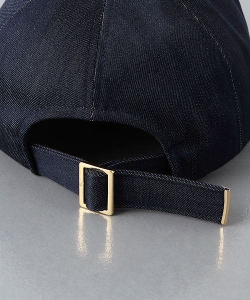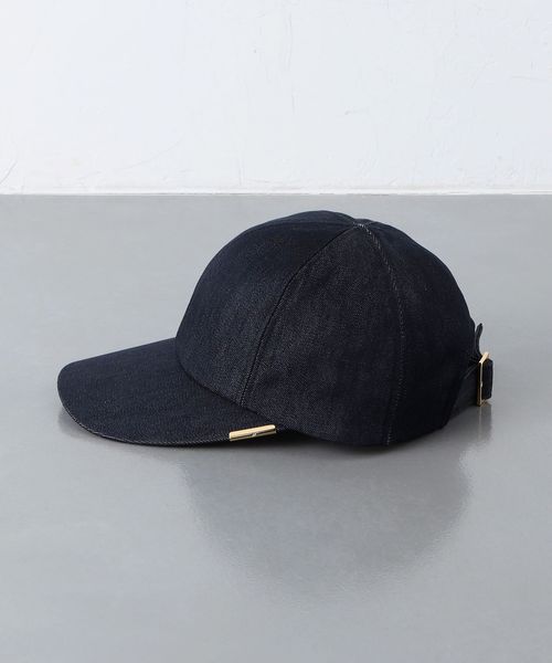 デニム素材を上品な印象に引き上げる、NAVYカラーにはゴールドカラーのパーツ使い、BLACKカラーには同色系のクールなパーツを使いわけ、細部にまでこだわったキャップ。