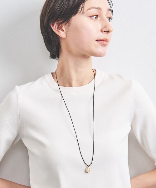 控えめなサイズながら凛としたメタルの装飾が着こなしのさりげないポイントになるネックレス。