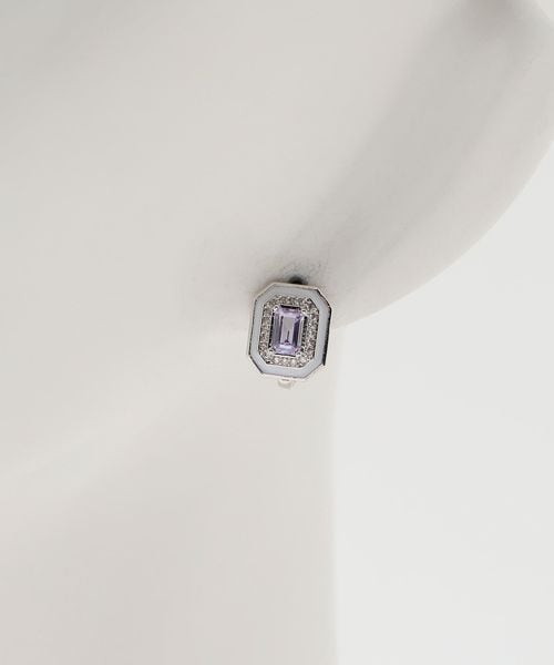 パステルなカラービジューのまわりにパヴェをあしらったピアス。