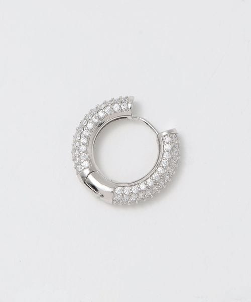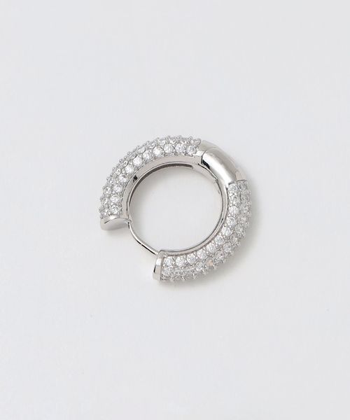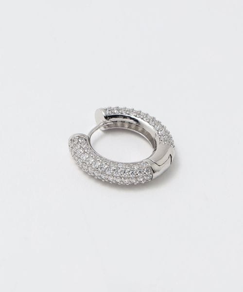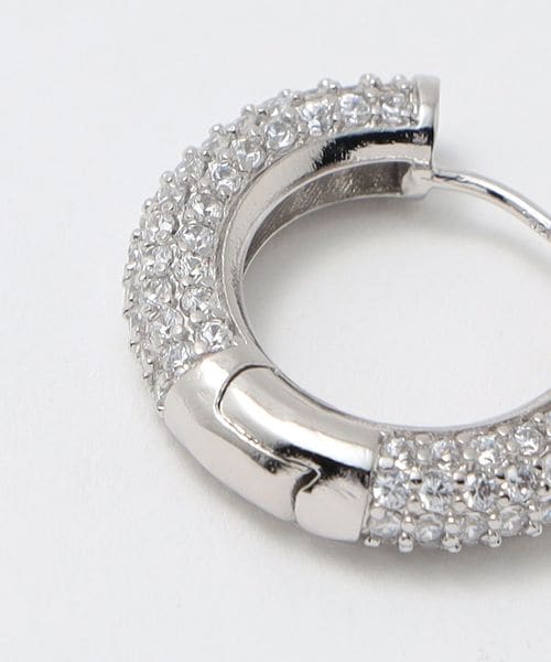 煌めくパヴェをちりばめた太めのフープピアスは、耳元で存在感を放ちます。