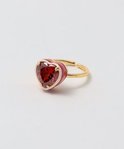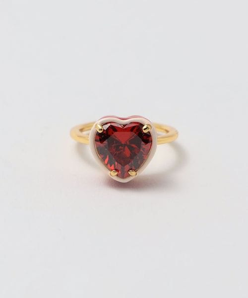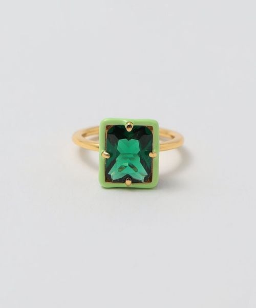 大ぶりなビジューと形に合わせた配色トリミングがキッチュなリング。
