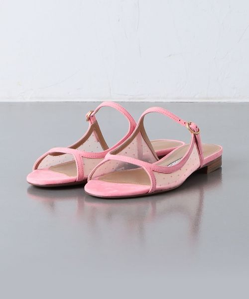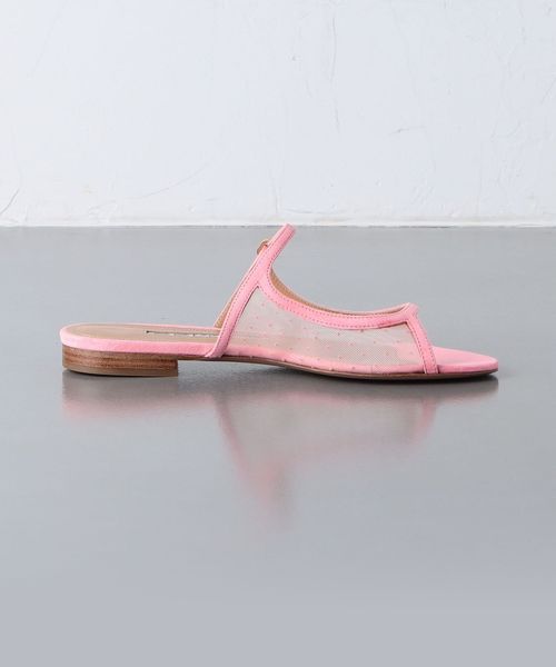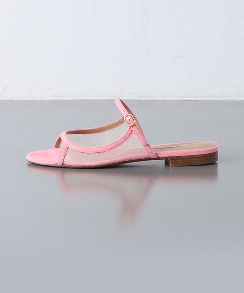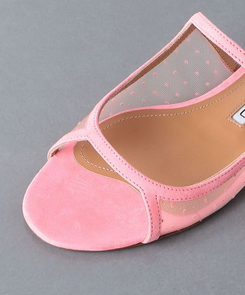 小さなドット柄のチュール素材がサイドに施されたフェミニンなフラットシューズ。