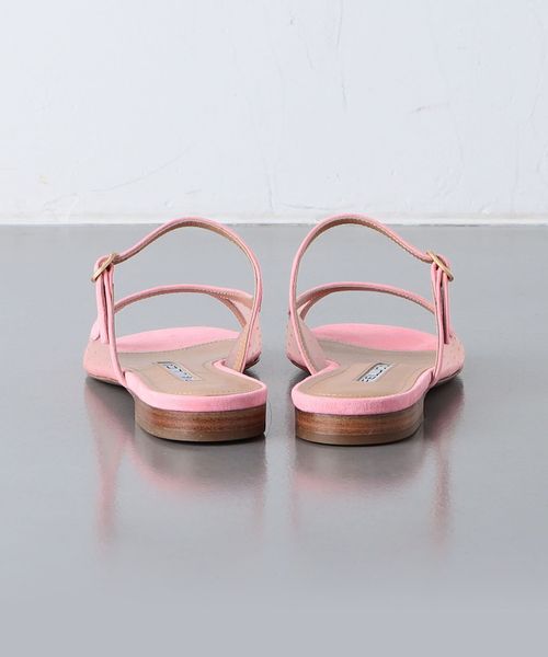 気分の上がる愛らしいピンクがアクセントになるフラットサンダル