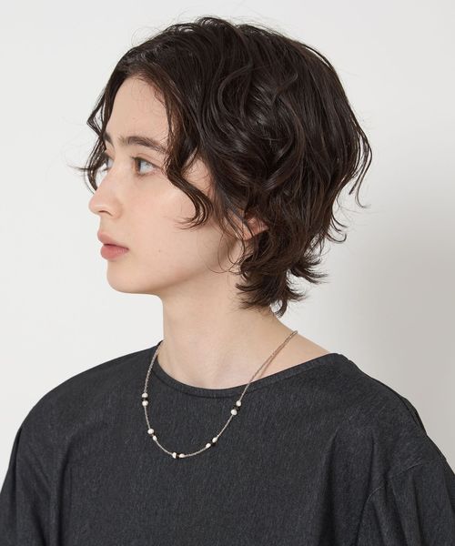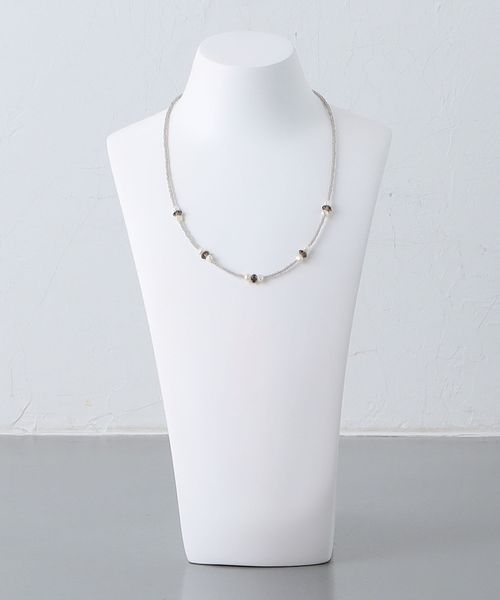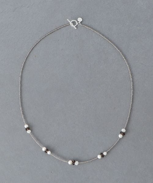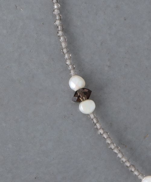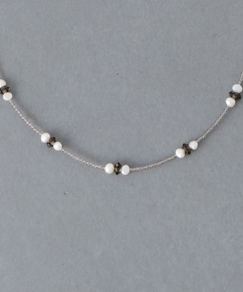 スモーキーなストーンとアクセントになる淡水パールをリズミカルに配したネックレス。