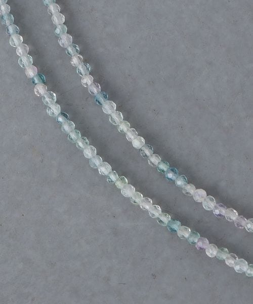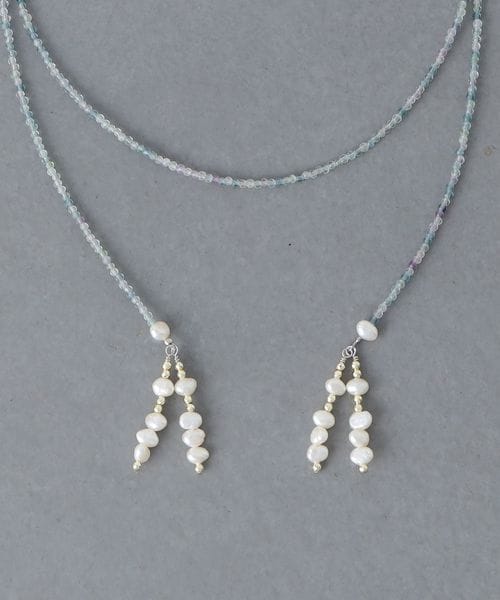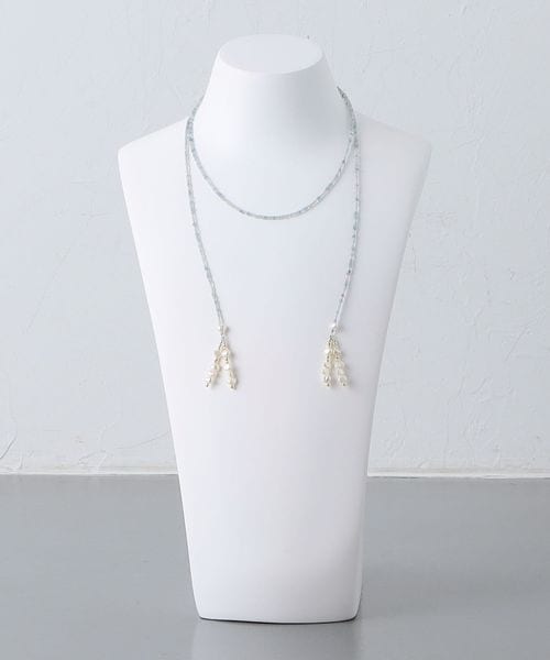 透明感のあるストーンのエンドに淡水パールのフリンジをあしらったラリエット。