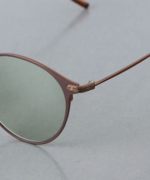 リムの表面がマットでヨロイとテンプルエンドに矢羽根刻印を配したサングラス。