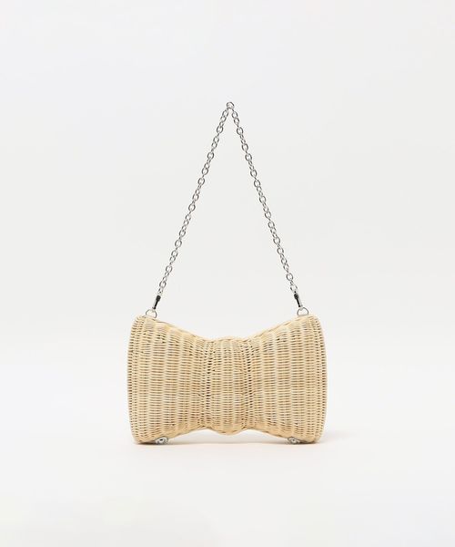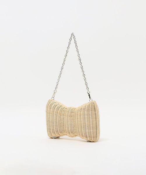 コロンとしたリボン型が愛らしいラタン素材のバッグ