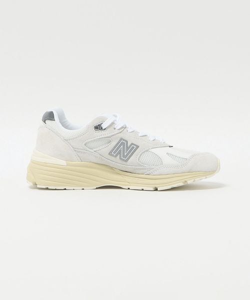 グレーをポイントに配したクリーンなオフホワイトのアッパーとヴィンテージ感漂うクリームカラーのソールのMIXバランスが魅力的なポイントです。