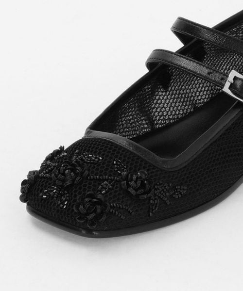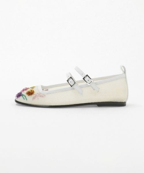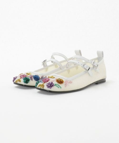 咲き誇る花をモチーフにしたメッシュ素材のフラットシューズ