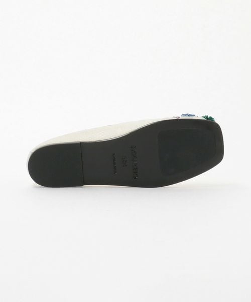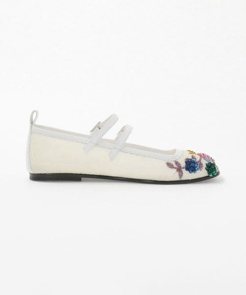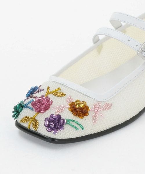 きらきらと輝くスパンコールやビーズでフラワー模様をあしらったフラットシューズ。