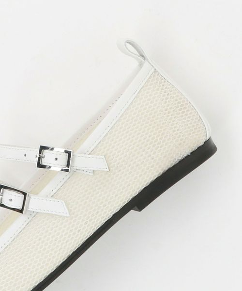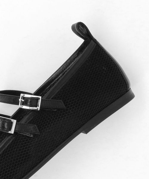 丸みのあるスクエアトゥと細身のダブルストラップが華奢な足元を演出します。