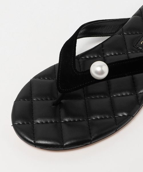 ストラップにのったイミテーションパールや、キルティングになったソールが高級感のある雰囲気。