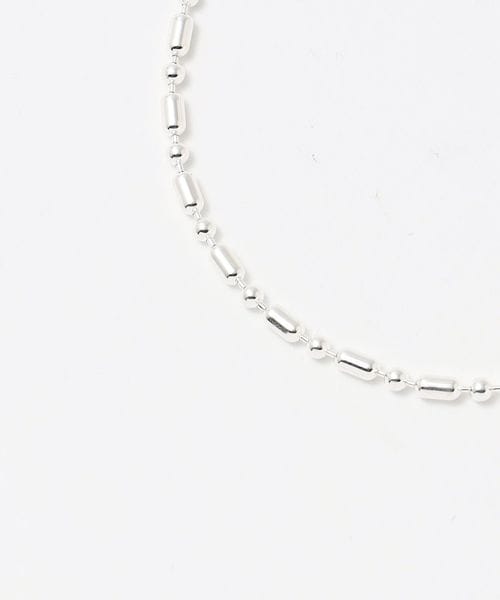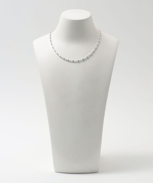 異なるデザインのパーツがリズミカルに連なったネックレス