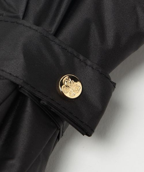 フェミニンなデザインながら、シックなブラックカラーとパーツをできるだけシンプルに仕上げた晴雨兼用の折りたたみ傘。