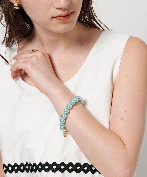 やや大粒のイミテーションパールのブレスレットを、大人の遊び心をくすぐるカラーバリエーションでご用意しました。
