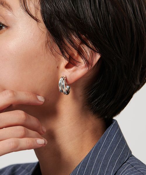 2つ重なった立体的なフープが美しい輝きを魅せるイヤリング